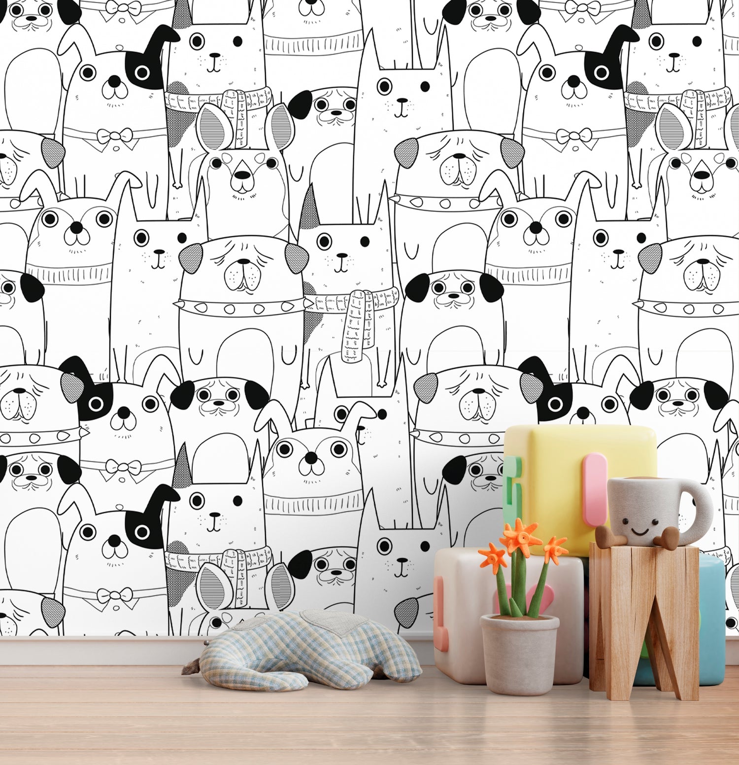 Faces Wallpaper Peel and Stick, Line Art Wallpaper, Black and White Wallpaper, Removable Wall Paper