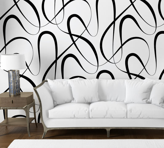Curves Wallpaper Peel and Stick, Abstract Black and White Line Textured Removable Wall Paper