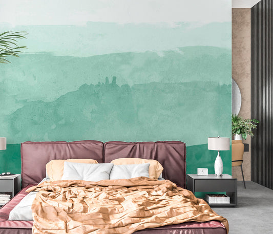 Green Watercolor Wallpaper Peel and Stick, Abstract Grunge Canvas Removable Wall Paper