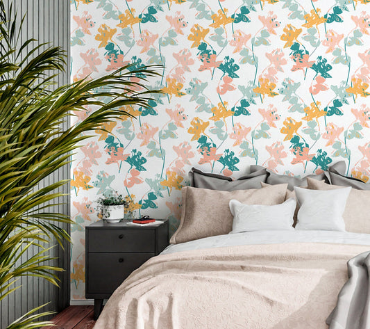 Spring Floral Wallpaper Peel and Stick, Abstract Leaf Canvas Removable Wall Paper
