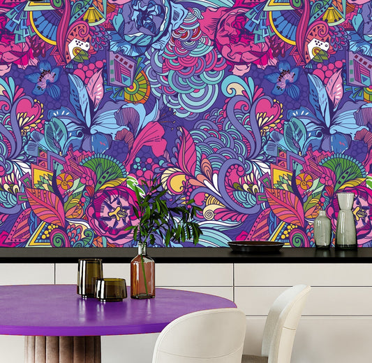 Doodle Wallpaper Peel and Stick, Colorful Wallpaper, Bright Abstract Wallpaper, Removable Wall Paper