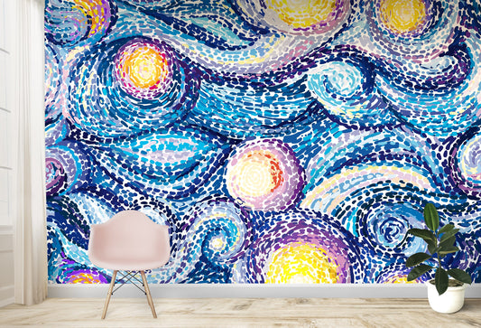 Van Gogh Wallpaper Peel and Stick, Moon Wallpaper, Brush Stroke Wallpaper, Abstract Wallpaper, Removable Wall Paper
