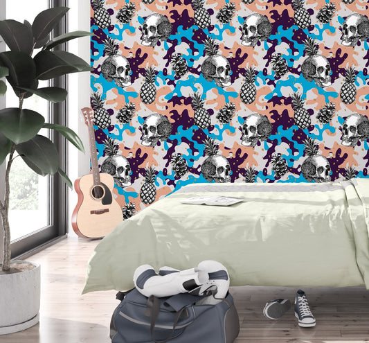Skull Wallpaper Peel and Stick, Skeleton Wallpaper, Abstract Wallpaper, Removable Wall Paper
