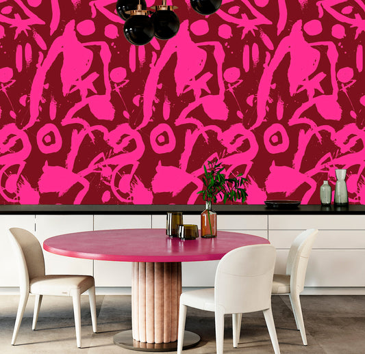 Brush Stroke Wallpaper Peel and Stick, Hot Pink Wallpaper, Colorful Wallaper, Abstract Wallpaper, Removable Wall Paper