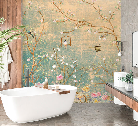 Chinoiserie Wallpaper Peel and Stick, Antique Bird Cage Removable Wall Paper