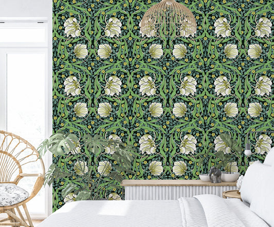 Classic Wallpaper Peel and Stick, William Morris Style Canvas Removable Wall Paper