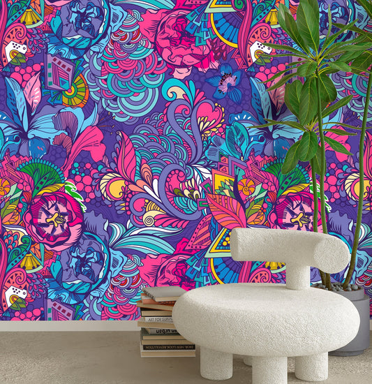 Circle Wallpaper Peel and Stick, Abstract Wallpaper, 80s Wallpaper, Geometric Wallpaper, Removable Wall Paper