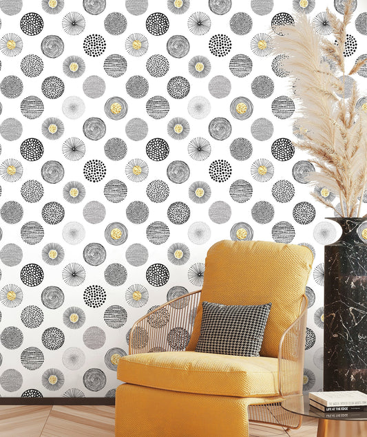 Circle Wallpaper Peel and Stick, Polka Dot Wallpaper, Black and White Wallpaper, Removable Wall Paper