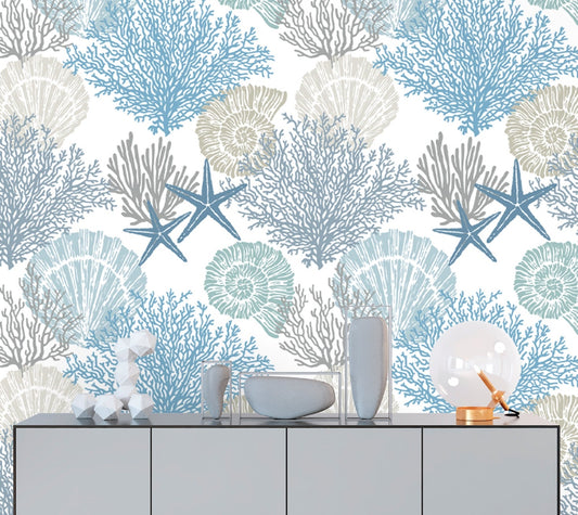 Coral Reef Wallpaper Peel and Stick, Seashell Wallpaper, Starfish Wallpaper. Sea Life Wallpaper, Removable Wall Paper