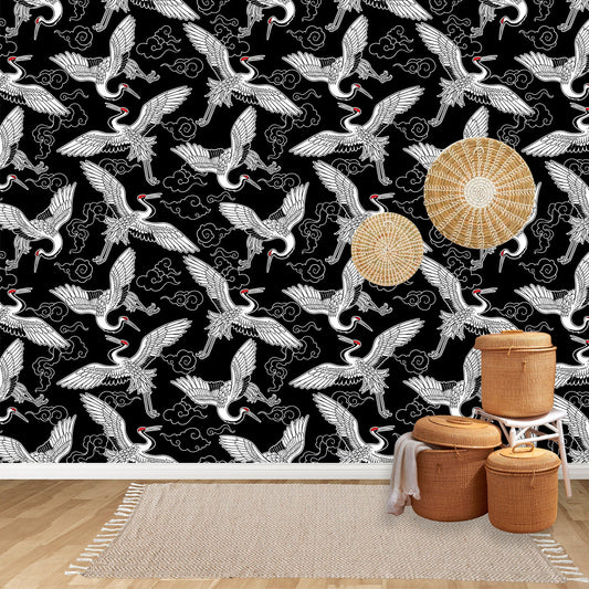 Crane Wallpaper Peel and Stick, Japanese Wallpaper, Oriental Removable Wall Paper