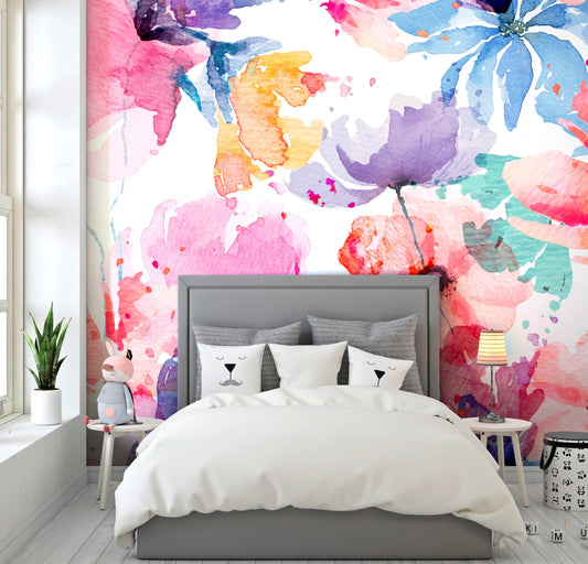 Colorful Wallpaper Peel and Stick, Watercolor Floral Wallpaper, Big Flowers Wallpaper, Removable Wall Paper