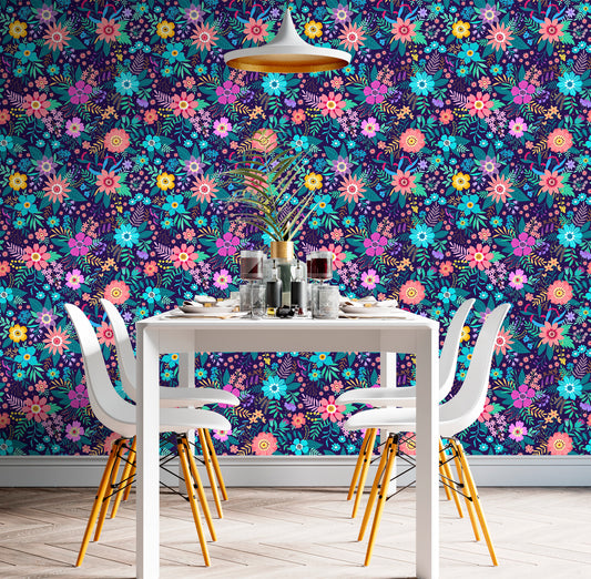 Colorful Wallpaper Peel and Stick, Dark Floral Wallpaper, Removable Wall Paper