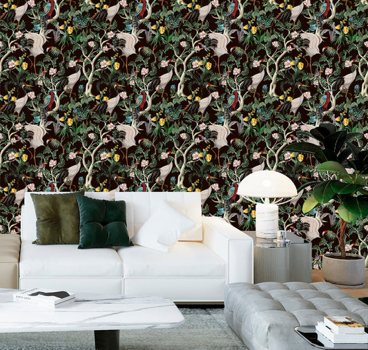 Crane Wallpaper Peel and Stick, Peacock Wallpaper, Chinoiserie Removable Wall Paper
