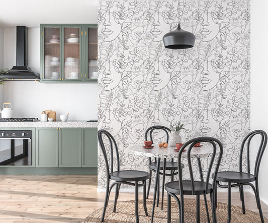 Faces Wallpaper Peel and Stick, Line Art Wallpaper, Black and White Wallpaper, Removable Wall Paper
