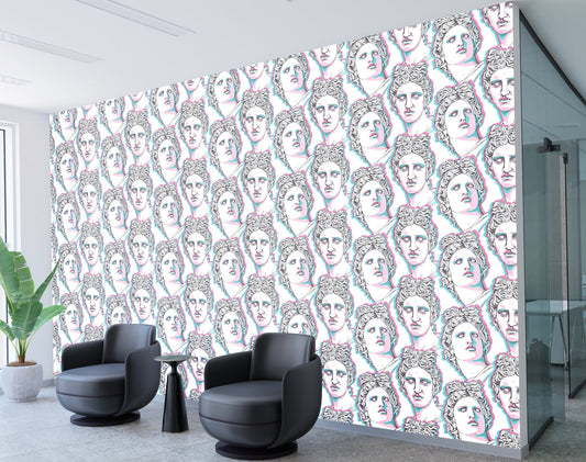 Faces Wallpaper Peel and Stick, Stylish Wallpaper, Greek Wallpaper, Sculpture Wallpaper, Removable Wall Paper