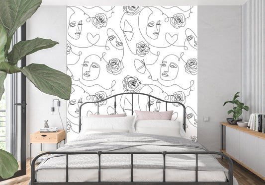 Faces Wallpaper Peel and Stick Wallpaper Black and White, Line Art Wallpaper, Removable Wall Paper