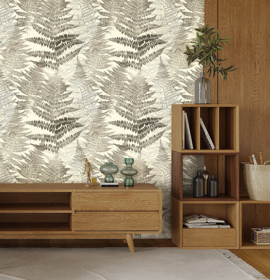 Fern Wallpaper Peel and Stick, Beige Leaf Wallpaper, Earthy Wallpaper, Removable Wall Paper