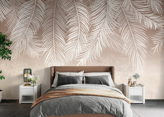Feather Wallpaper Peel and Stick, Beige Wallpaper, Boho Wallpaper, Removable Wall Paper