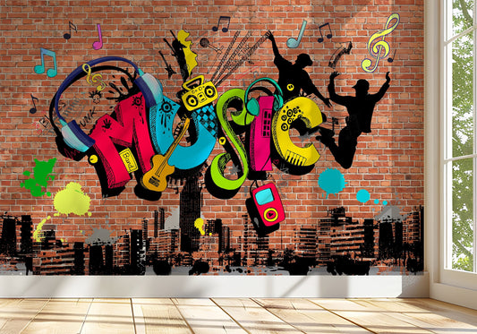 Graffiti Wallpaper Peel and Stick, Funky Music Street Art Removable Wall Paper