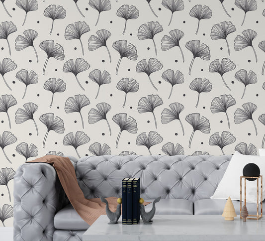 Ginkgo Wallpaper Peel and Stick, Modern Wallpaper, Scandinavian Wallpaper, Removable Wall Paper