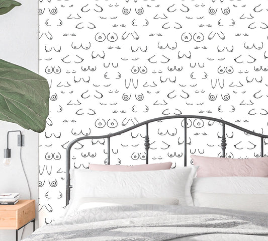 Funny Peel and Stick Wallpaper Boobies, Breast Line Art Canvas Removable Wall Paper