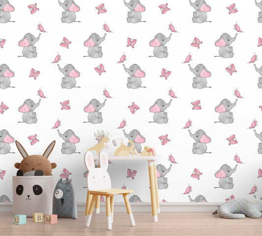 Baby Elephant Wallpaper Peel and Stick, Nursery Wallpaper, Removable Wall Paper
