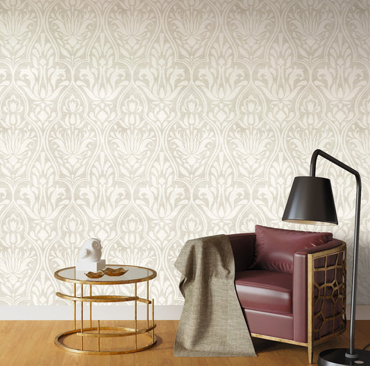 Baroque Wallpaper Peel and Stick, Beige Damask Wallpaper, Neutral Wallpaper, Removable Wall Paper