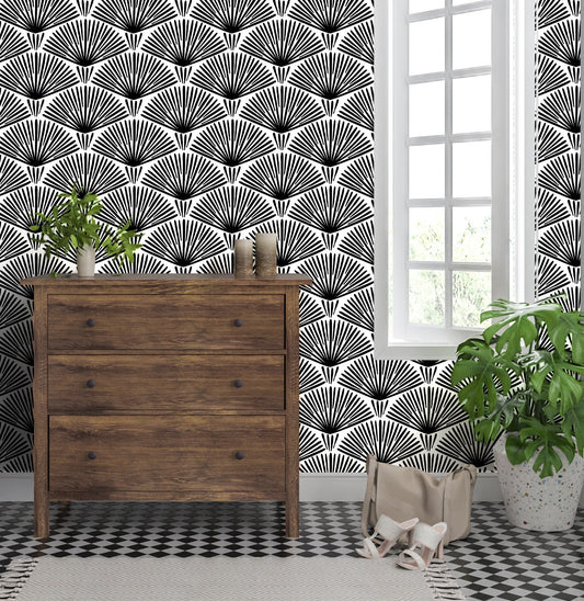 Art Deco Wallpaper Peel and Stick, Retro wallpaper, Black and White Wallpaper, Geometric Wallpaper, Removable Wall Paper