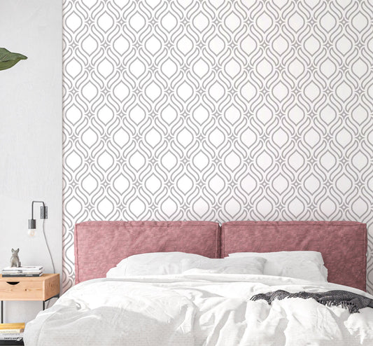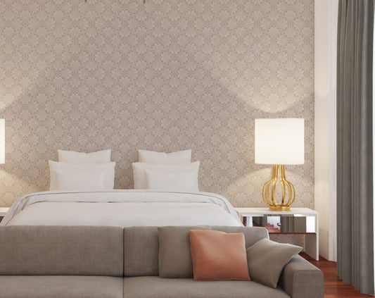 Neutral Oriental Wallpaper Peel and Stick, Arabesque Canvas Removable Wall Paper