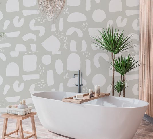 Organic Shapes Wallpaper Peel and Stick, Hand Drawn Canvas Removable Wall Paper