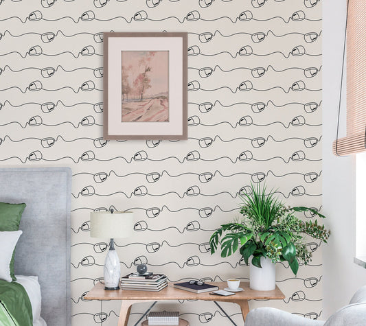 Office Wallpaper Peel and Stick, Computer Mouse Line Art Removable Wall Paper