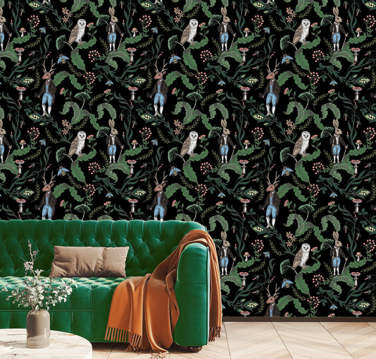 Owl Wallpaper Peel and Stick, Woodland Wallpaper, Deer Wallpaper, Mushroom Wallpaper, Removable Wall Paper
