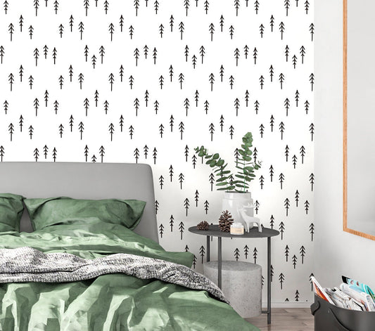 Pine Tree Wallpaper Peel and Stick, Black and White Minimalist Removable Wall Paper