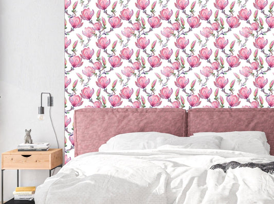 Pink Floral Wallpaper Peel and Stick, Watercolor Wallpaper, Removable Wall Paper