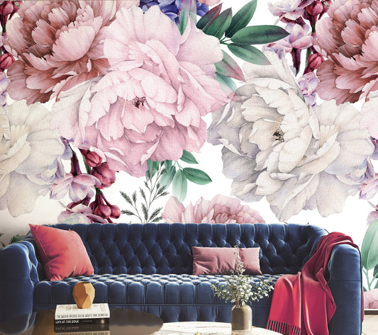 Peony Wallpaper Peel and Stick, Pink Floral Wallpaper, Big Flower Wallpaper, Watercolor Floral Wallpaper, Removable Wall Paper