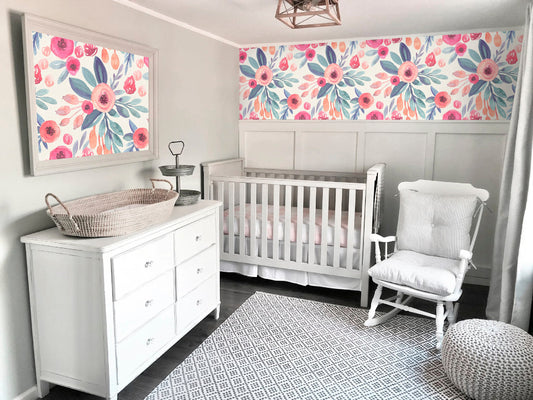 Pink Floral Wallpaper Peel and Stick, Nursery Wallpaper, Removable Wall Paper
