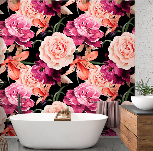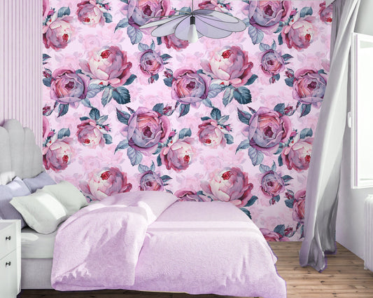 Pink Roses Wallpaper Peel and Stick, Big Flower Wallpaper, Peony Wallpaper, Nursery Wallpaper, Removable Wall Paper