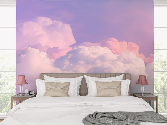Pink Sky Wallpaper Peel and Stick, Cloud Nursery Canvas Removable Wall Paper
