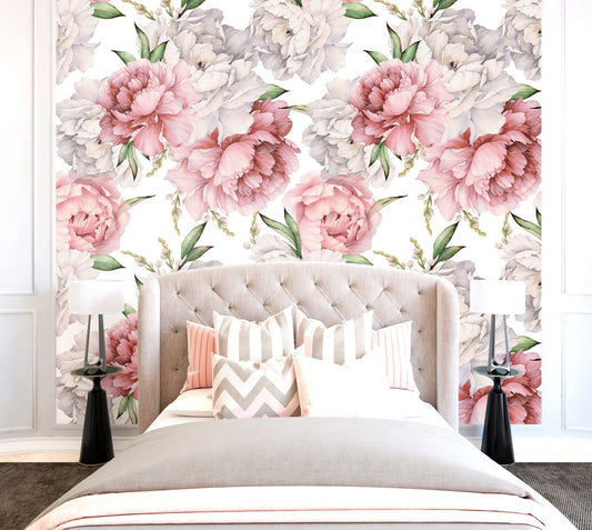 Pink Peony Wallpaper, Floral Wallpaper Peel and Stick, Nursery Wallpapers, Removable Wall Paper