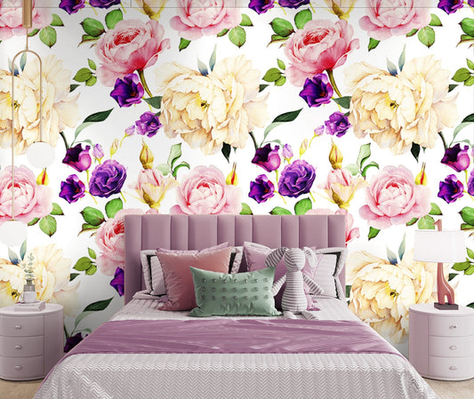 Pink Roses Wallpaper Peel and Stick, Watercolor Floral Wallpaper, Big Flower Wallpaper, Removable Wall Paper