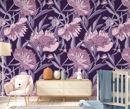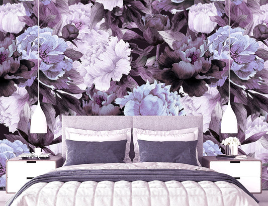 Purple Wallpaper Peel and Stick, Dark Floral Wallpaper, Big Flower Wallpaper, Peony Wallpaper, Removable Wall Paper