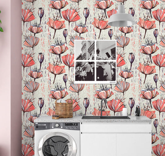 Poppy Wallpaper Peel and Stick, Watercolor Floral Wallpaper, Big Flower Wallpaper, Removable Wall Paper