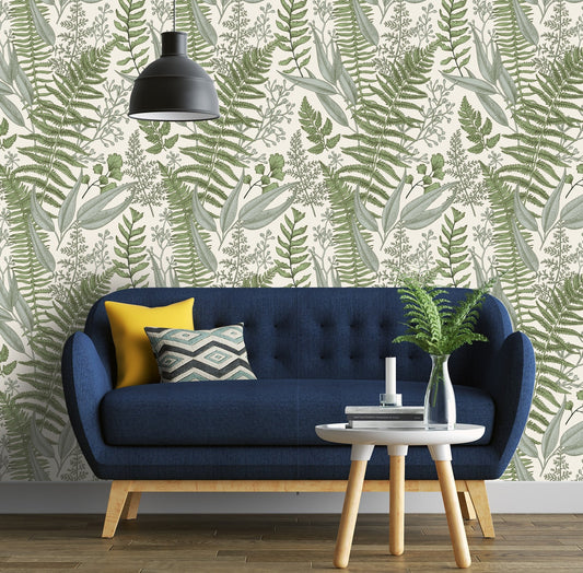 Removable Wallpaper Peel and Stick Wallpaper Mural Vintage Fern Leaves Wall Paper