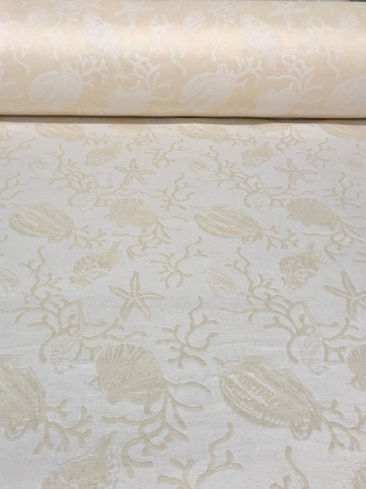 Seashell Fabric by the Yard, Starfish Fabric, Double Sided Fabric, Bedspread Fabric, Upholstery Fabric for Pillows, Cream Fabric