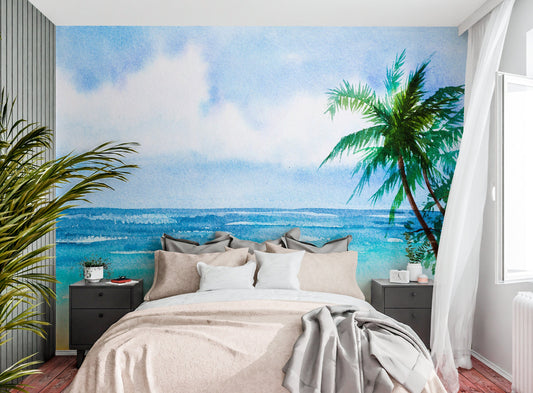 Seascape Wallpaper Peel and Stick, Watercolor Beach Removable Wall Paper