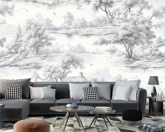 Scenic Wallpaper Peel and Stick, Vintage Forest Landscape Removable Wall Paper