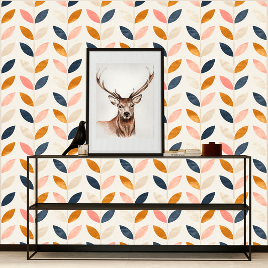 Scandinavian Wallpaper, Leaf Wallpaper, Peel and Stick Nursery Wallpaper, Removable Wall Paper