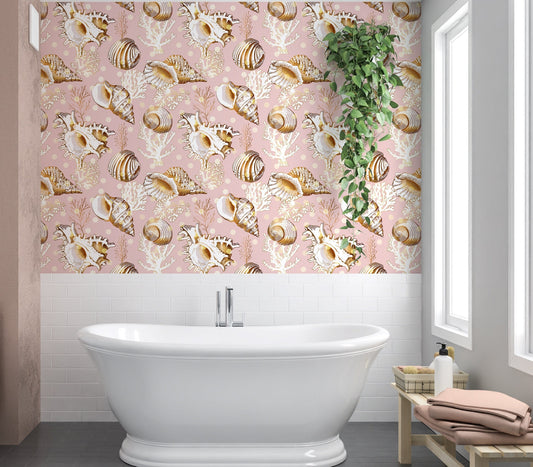 Seashell Wallpaper, Coral Wallpaper, Sea Life Wallpaper Peel and Stick, Nursery Wallpaper, Removable Wall Paper