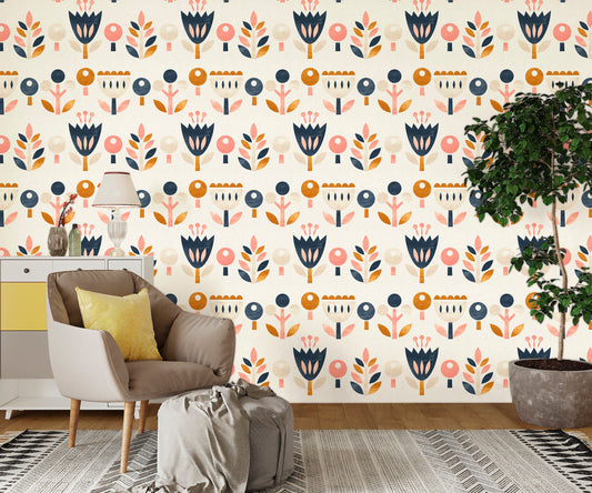 Scandinavian Wallpaper Peel and Stick, Mcm Wallpaper, Beige Wallpaper, Removable Wall Paper