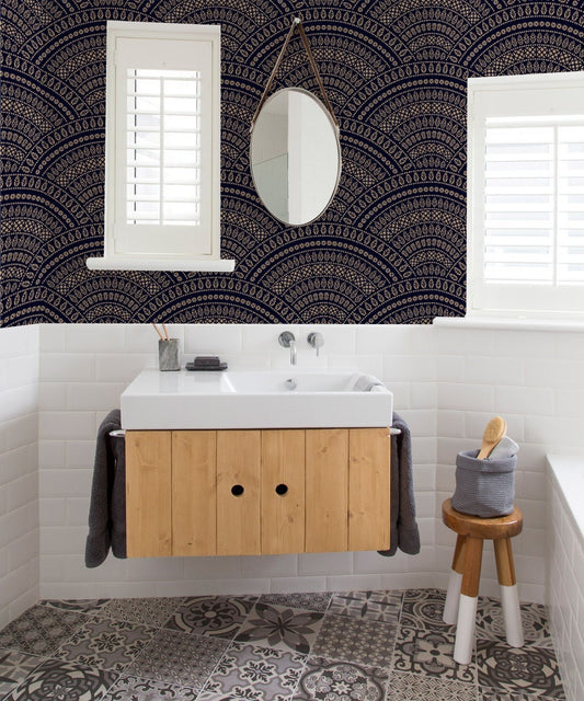 Scallop Wallpaper, Art Deco Peel and Stick Wallpaper, Dots Wallpaper, Removable Wall Paper